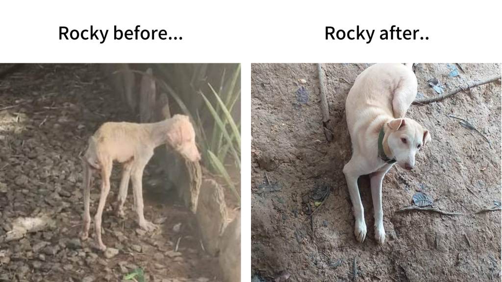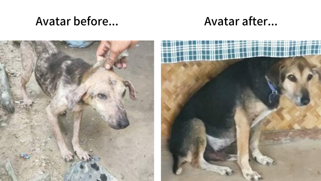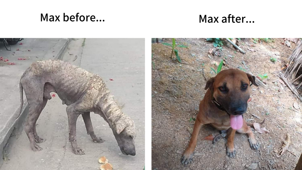 Although we have worked with street dogs for years in Port Barton, Street dog sanctuary officially begun at the end of lockdown in April 2020. After spending 6 straight weeks home quarantined (as per the stringent restrictions here), we were shocked at the conditions of the remaining street dogs. Many were missing, but those who remained were sick with skin illnesses, extremely hungry and neglected. The dogs were loved by so many tourists, and with the instant collapse of the tourism industry overnight, this left the dog population fighting to survive. And so our street feeding begun. Today we feed 300 to 400 dogs a day.